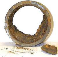 una salida de humos de caldera sin deshollinar, sucia de sulfatos y hollín tiene una